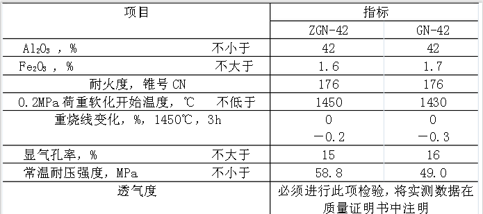 1.1 磚按理化指標分為ZGN-42和GN-42兩種牌號。