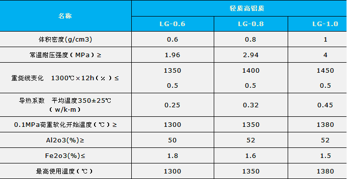 盛威小編為大家闡述輕質高鋁磚的理化指標 :